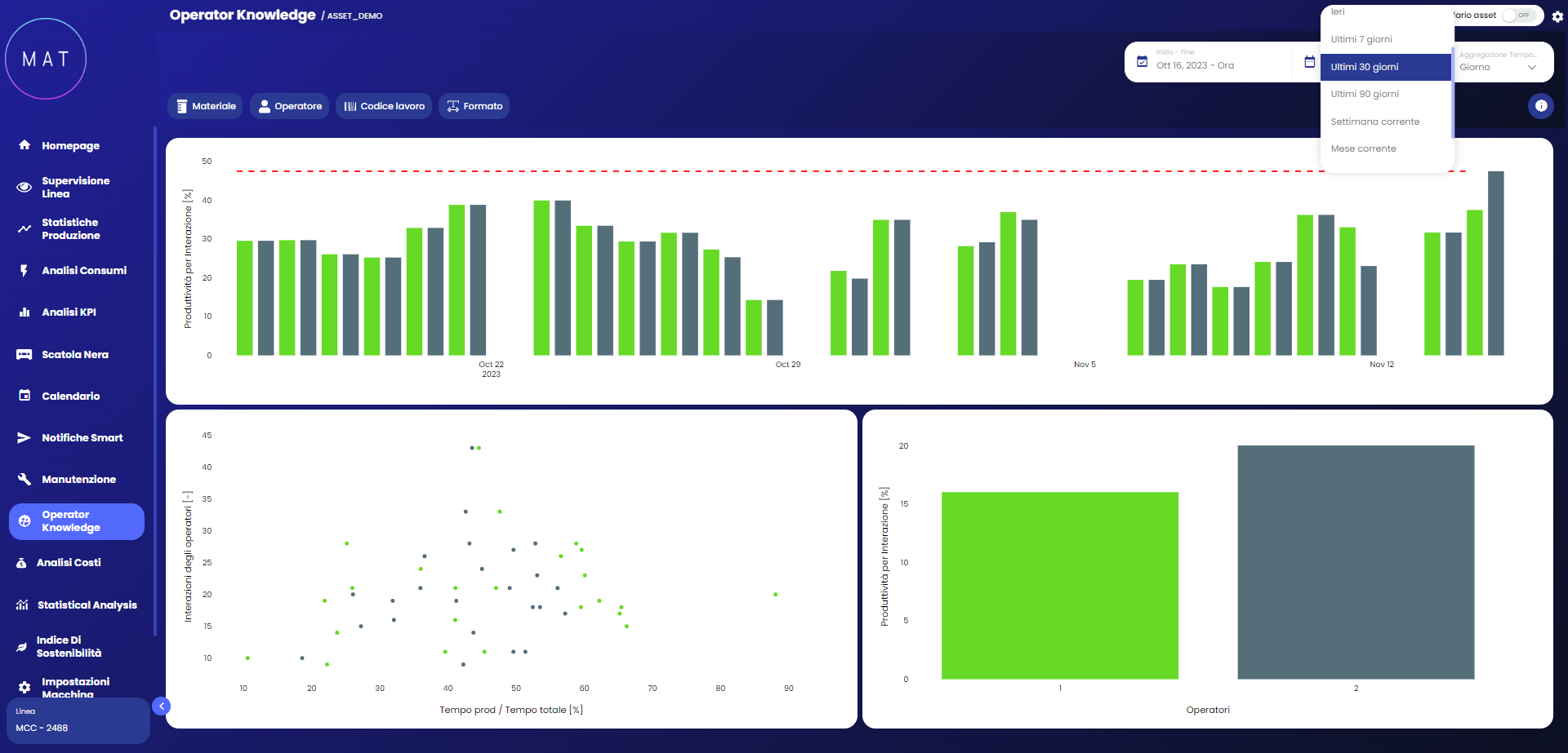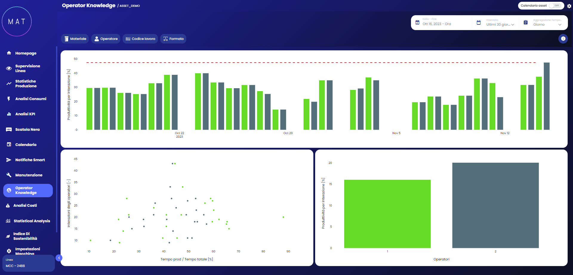 The module dedicated to Operator Knowledge allows for the display of an analysis based on the interaction between the operator and the machine.
