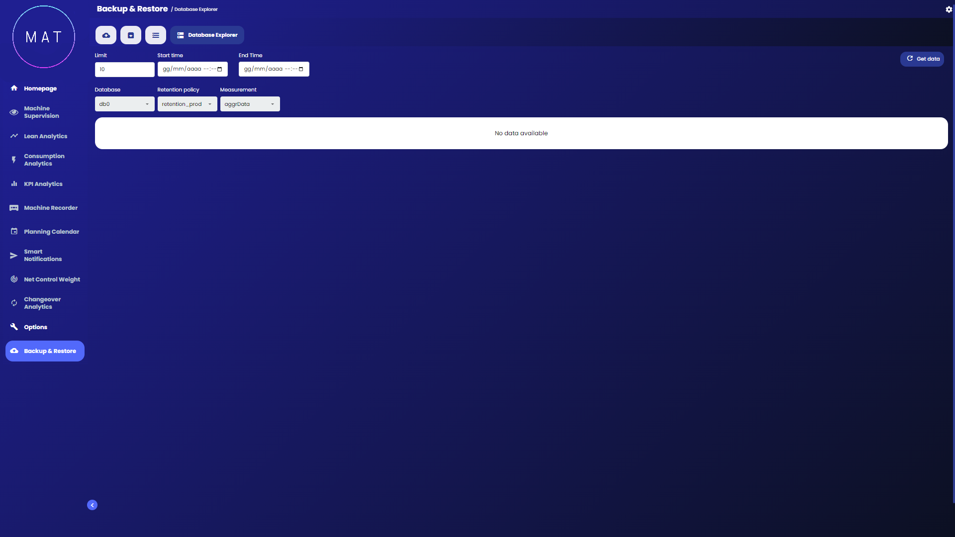 To download data, it is necessary to configure all the required fields within the page according to one's needs. The application will use these parameters to create queries that will then be submitted to the database.
