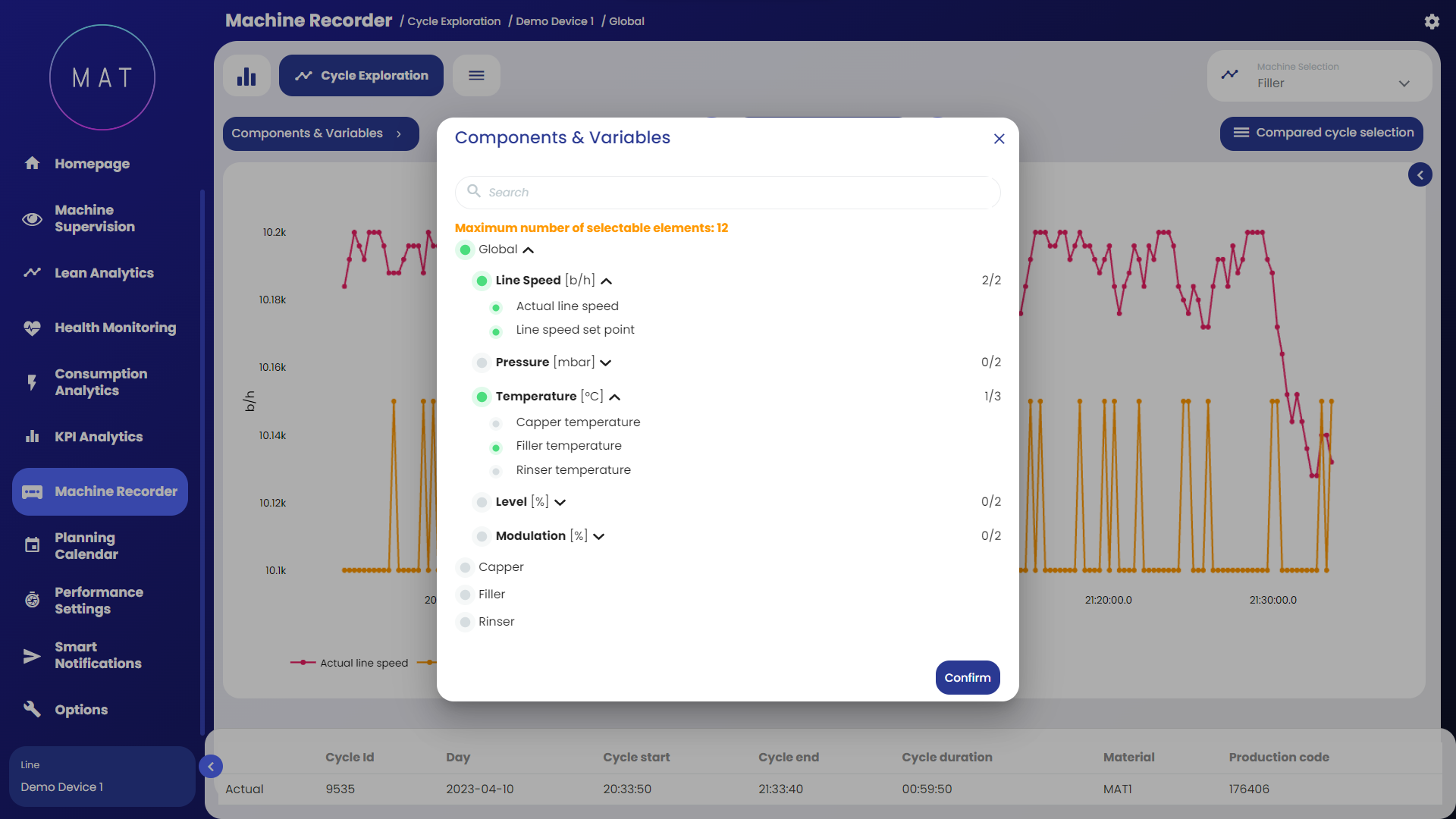 If provided, this subsection allows one to go into detail about the performance of individual machine/line process variables within a given work cycle.